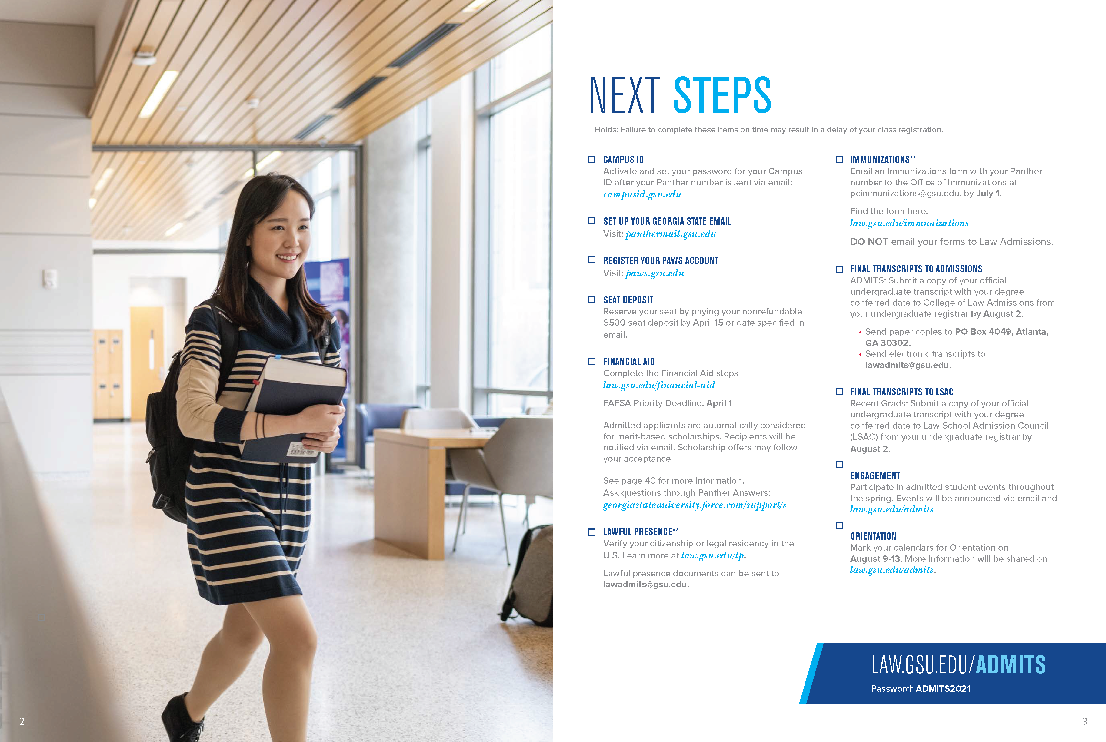 All admitted law students are sent this branded booklet to encourage them to enroll with the college.